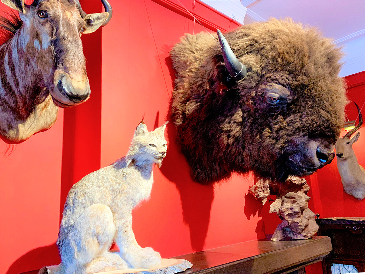 A residence totally preserved as it was built in the late Meiji period, with its moat, walls and window frames. It has been designated a “Cultural Property of Kobe” for the moat at the front door, built with red bricks ordered from Germany at that time. The house was redecorated in 2019 and displays a precious stuffed polar bear, wolf, American bison and so on.